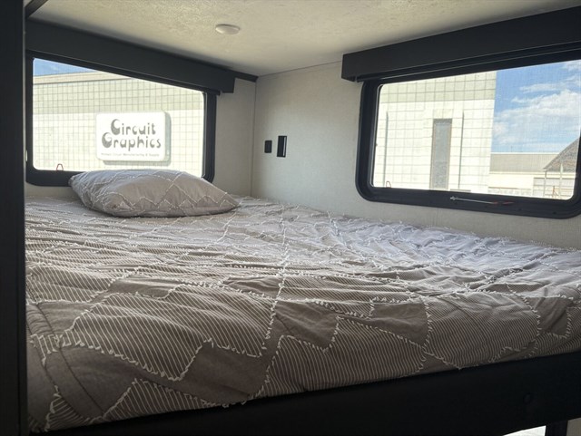 Bunkhouse: Double-sized bunks, seating, TV hookup, and storage.