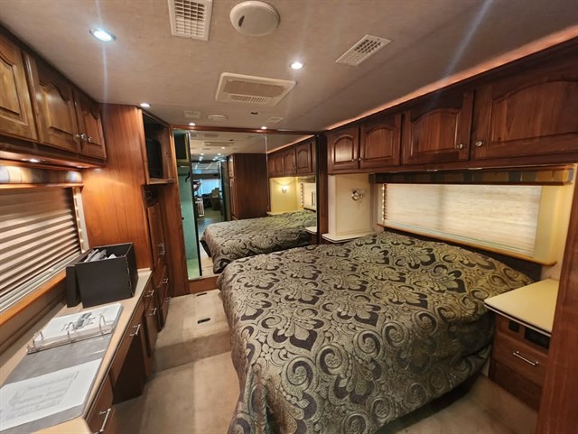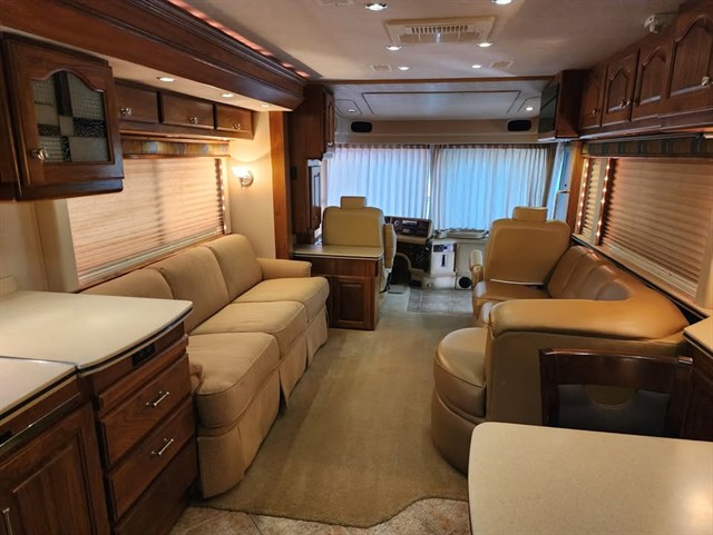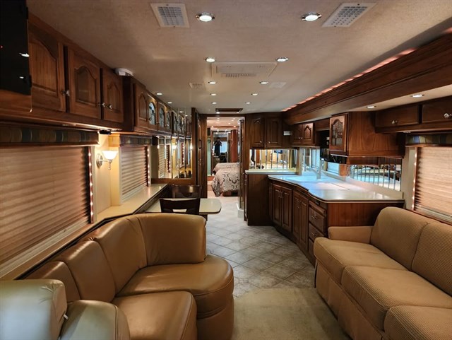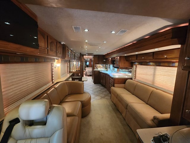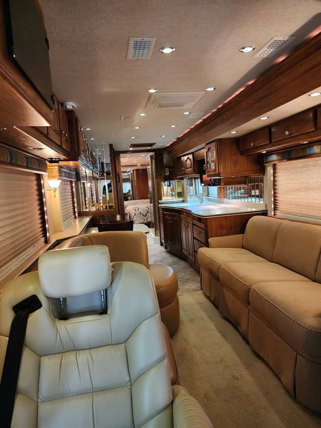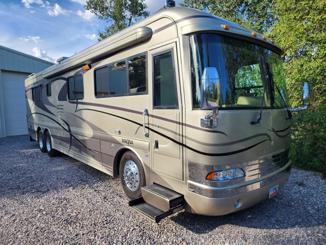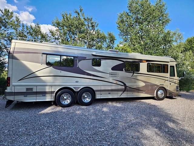 Beautiful 40' Country Coach Magna in excellent condition. Diesel pusher with a Cat C12 motor and 50k miles. Six newer tires on the back (2023 manufacture date) and good tires on the front (2020 manufacture date). Six new AGM batteries as of Jun 2024. Lots and lots of recent maintenance (happy to provide receipts from Olstrom's in Tucson) including all new airbags, complete chassis inspection, tune up of Hurricane heater, service on generator, and fixes on some simple stuff. It starts and runs perfectly. We just got back from a 750 mile trip to Colorado and it performed perfectly. Two slide outs, four awnings, large Dometic refrigerator, two Dometic AC/heat pumps, Hurricane heater, water heater, large shower, solid walnut cabinetry throughout, no smells or stains, no leaks anywhere, windows are all in great shape, blinds on every window, porcelain toilet, two vanity sinks, microwave/convection oven, gas stove top, nice sized kitchen sink, loads of storage underneath and inside, washer/dryer combo, new headlights, LED lights inside the coach. A couple of things the new owner may want to address: The HWH leveling system does not light up (although the coach seems to level itself when parked). The travel light comes on but the other lights do no. A few spots on the paint appear to be getting soft - nothing has peeled but the little cracks are appearing. We have not tried the ice maker or the washer/dryer so can't comment on if they work. This is a spectacular coach that rolls down the road very nicely. It is super comfortable to stay in. With a full-price offer I am willing to meet someone near Salt Lake City or Las Vegas airport. I have lots of additional pictures in a google drive that I am happy to share with interested buyers. The coach has a salvage title because of a small fire in the electrical bay many years ago. I am happy to share pictures of the electrical bay. This has not caused us any issues.