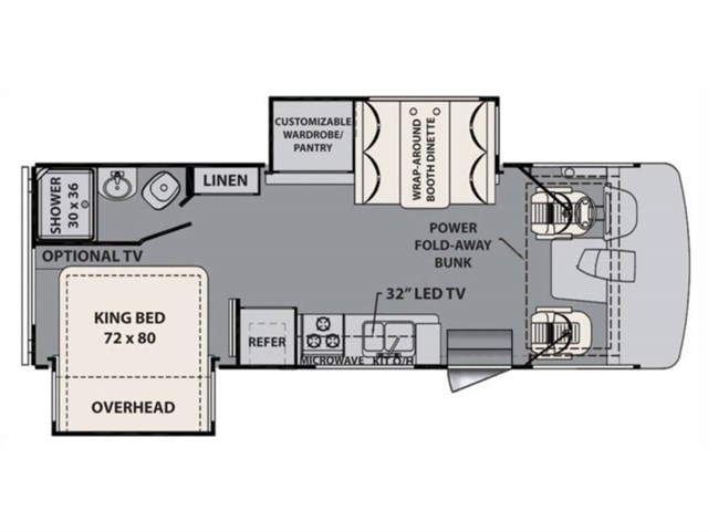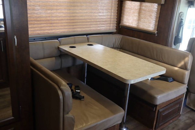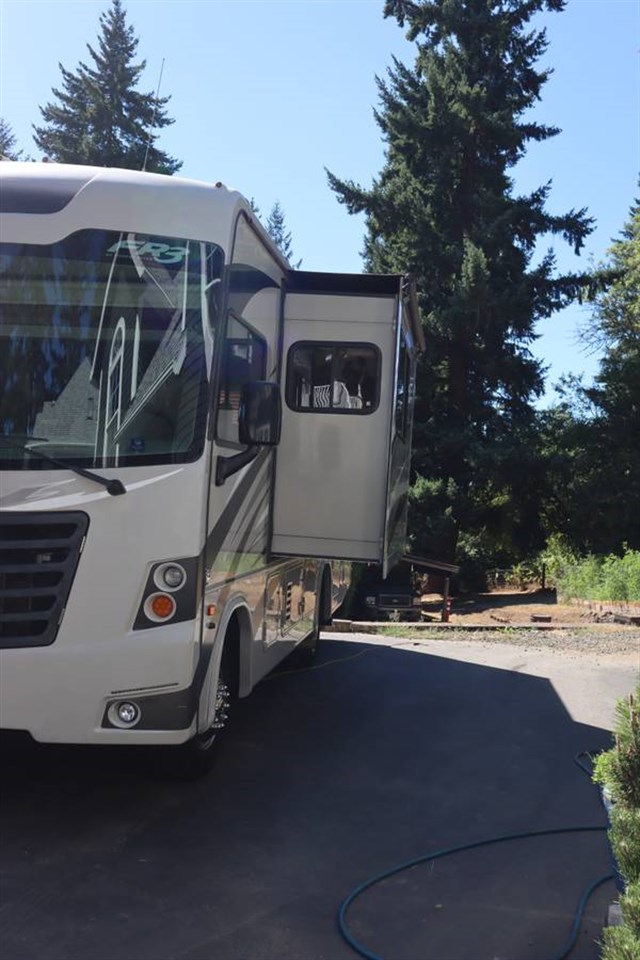 This wonderful Class A looks and functions beautifully inside and out. We love this RV and are sad to let it go, but life issues are forcing us to sale this 25-foot beauty. Inside is a king bed with an upgraded mattress and ledges on each side for phones and glasses, also a large TV that also swivels to face the main cabin. The bathroom has a "real human" sized shower. In the main cabin there is a great, customized pantry. Below the dining benches houses two roll-out 4-foot-deep drawers. All the appliances are in excellent working order. The generator has been started often for short times which is why it has only 1,223 hours on it and also push-button leveling jacks. Utility hook-up is excellent, no getting down your knees to connect and it has a black tank flush. There is a TV inside and outside. The awning is electric, no hooking or pulling as on the manual ones. The engine runs great. There is a bunk that comes down over the driving area and the dining table drops for a smaller bed area. This RV is a great size to drive. So come check her out!