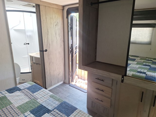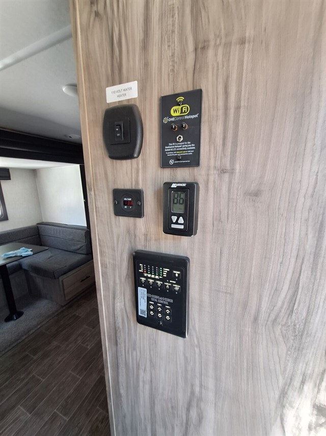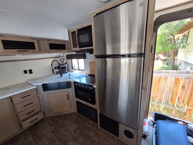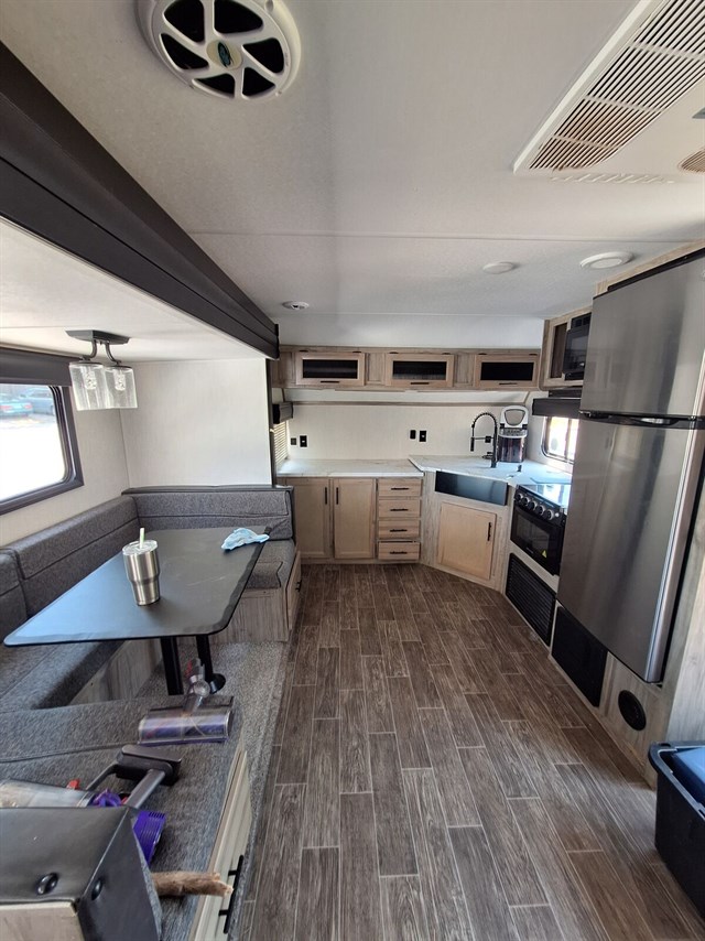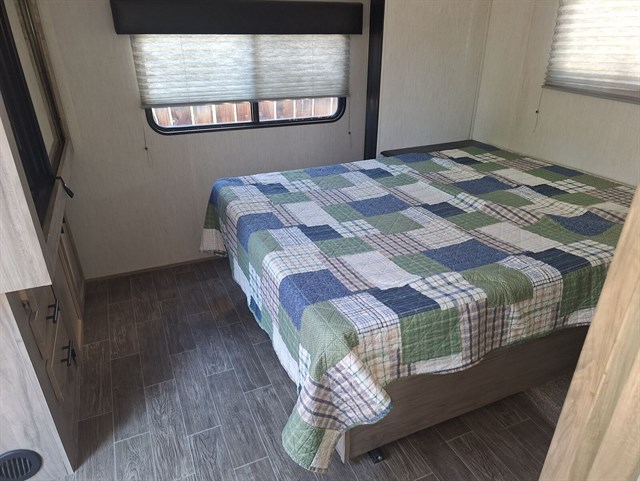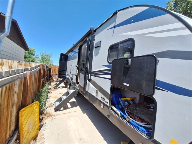 Alpha wolf trailer. Front kitchen 2 slides with awnings, solar panel, heated belly, separate bedroom.
