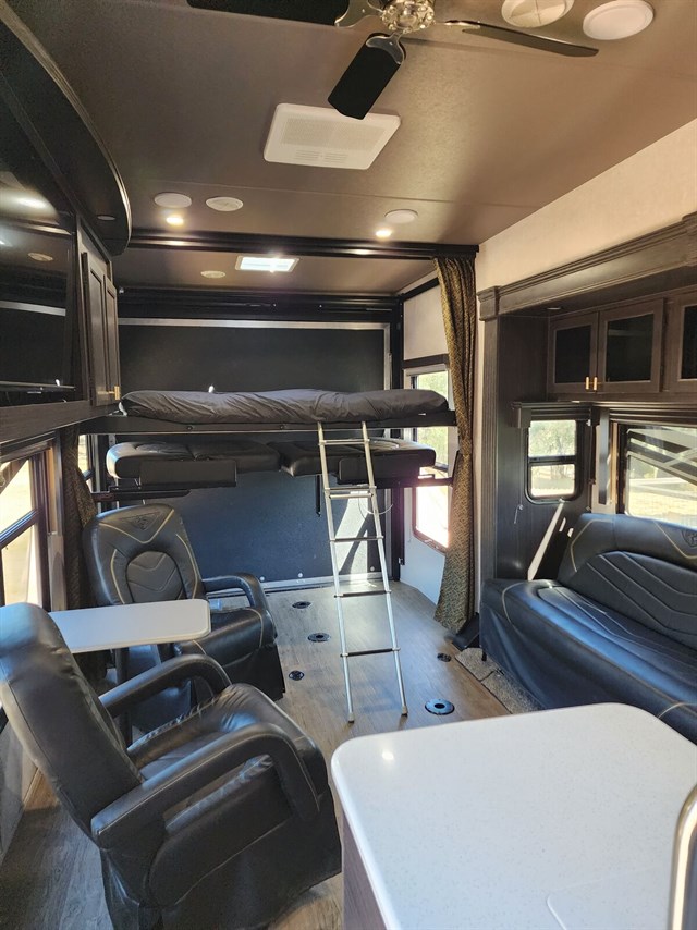 electric power awning, ramp-style cargo door, and 30 gallon auxiliary fuel tank to