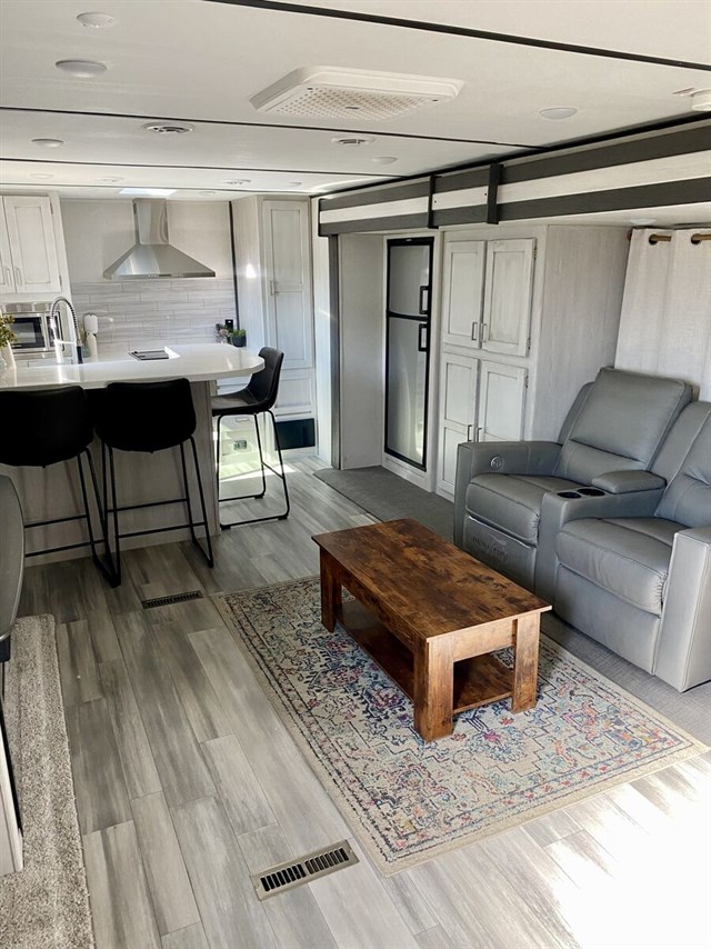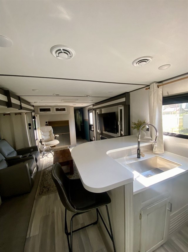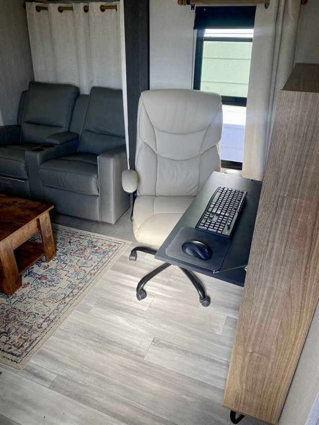 Everything in great condition. No problems and everything works. Less than 400 road miles, 3 slides, 2 AC units, completely automated level system, electric fireplace, 81 gal fresh water tank, 68 gal grey water, 34 gal black, equalizer/stabilizer hitch and heated hose included, tires always covered and in perfect condition, awning in perfect condition, solar panel hookup for second solar panel, winegard Tv system ready- just need gateway. Included Coffee table, office chair, desk and couch/bed (not pictured but will send pictures if wanted) included if wanted. Two 7.5 gallon propane tanks with Bluetooth tank monitors.