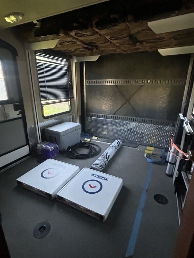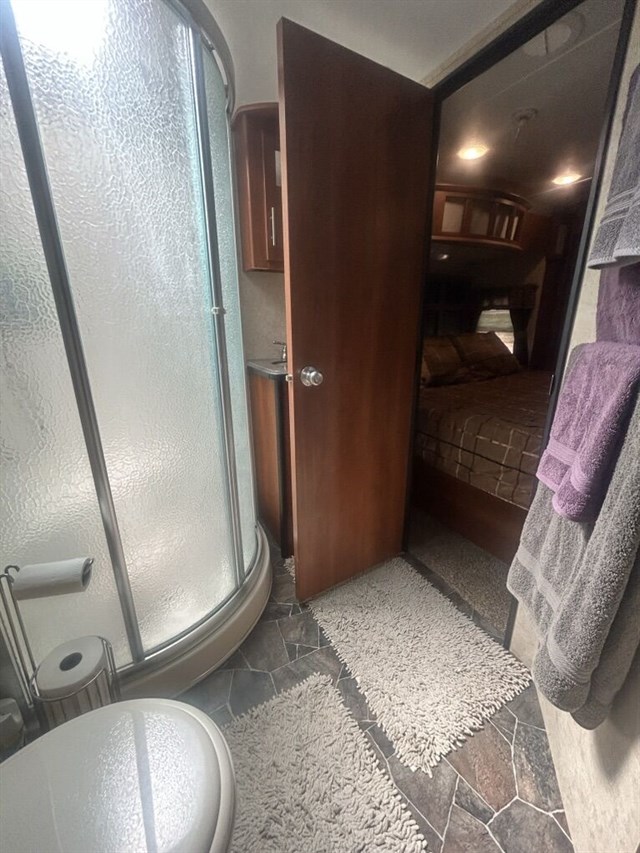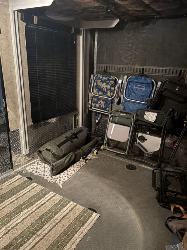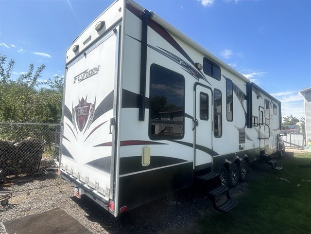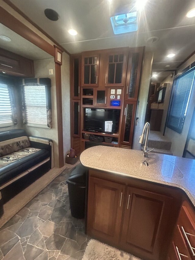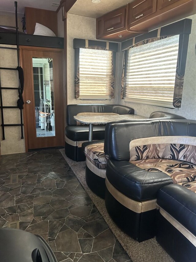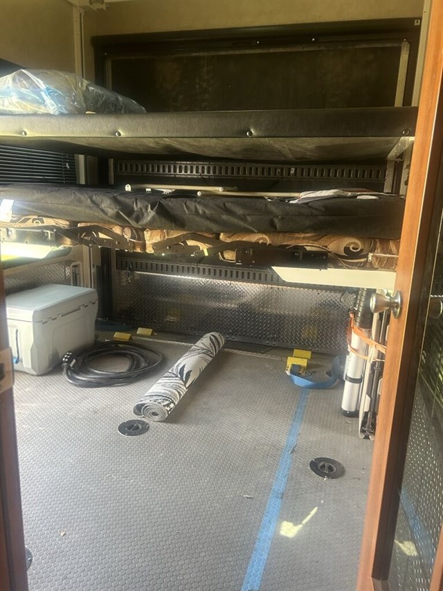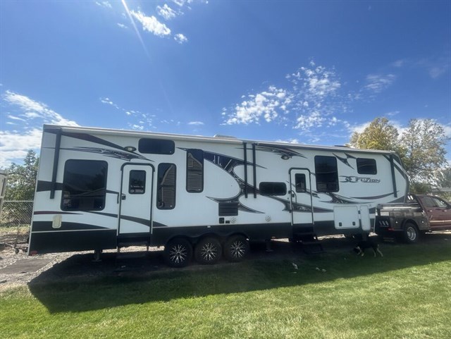 This toy hauler in good shape 10’ garage for toys and fueling station onboard also onboard air compress1 and 1/2 baths onboard 5500 with Onan generator, self leveling system and so much more!