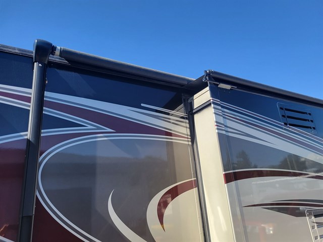 5,500-watt Onan generator, automatic hydraulic leveling jacks, a power patio awning, and a rear vision backup camera, OUTSIDE TV and much more!