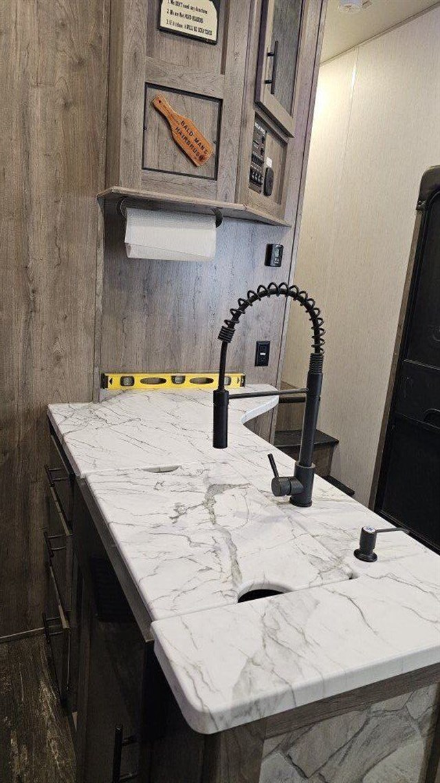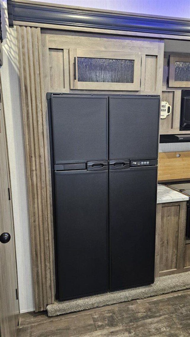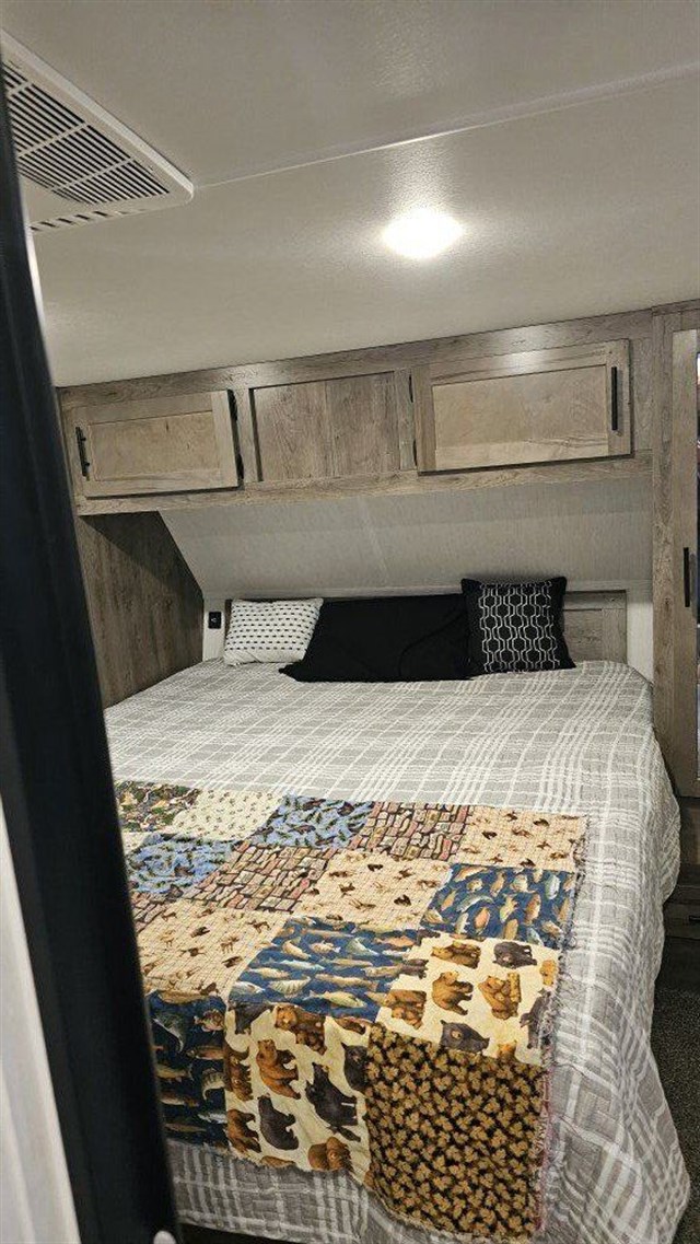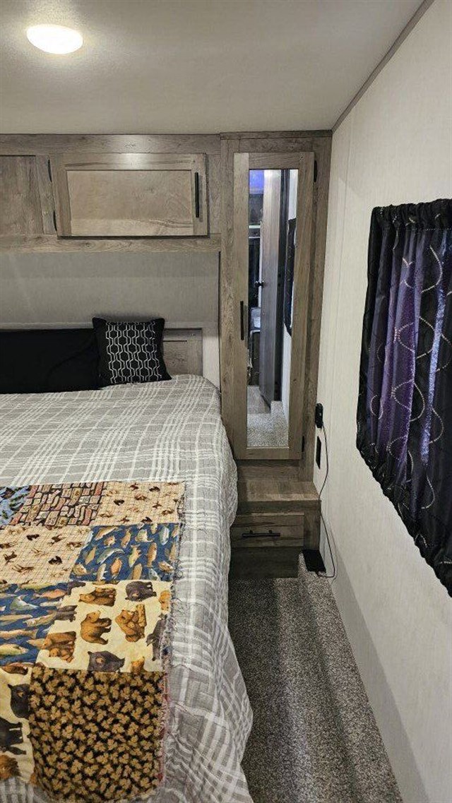 Sleeping space for nine to ten people make this the perfect family unit to take to the lake! Your guests will have the 13' separate garage all to themselves that includes a half bath, a Happijac power bed with two sofas underneath, plus their own exterior entrance door for convenience. There is also a wrap around loft that will be great for any kids that tag along. Within the kitchen and main living area you will find dual opposing slides for added interior space, and the chef of the family can prepare dinner at the counter peninsula. Sit around the U-shaped dinette as you dine and enjoy the fireplace, or take your plate outdoors to sit under the two 12' power awnings! This model also includes a front master bedroom with a Wolf Pack king bed, dual wardrobes, and its own private entrance into the dual entry bath!