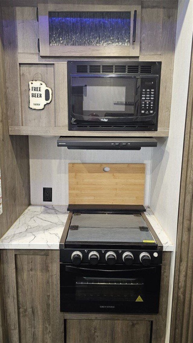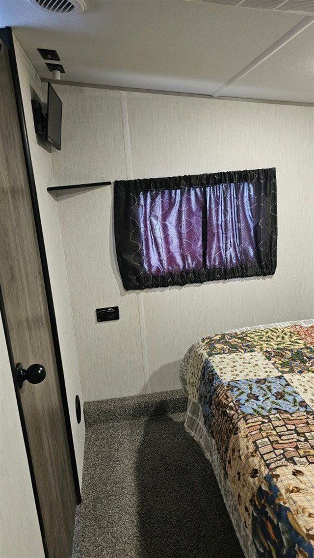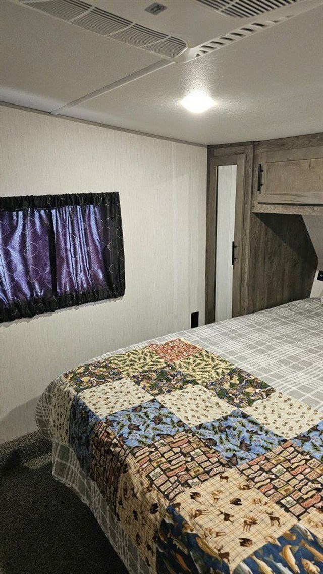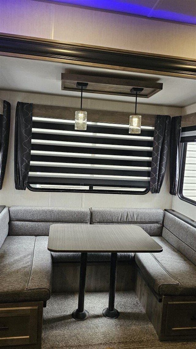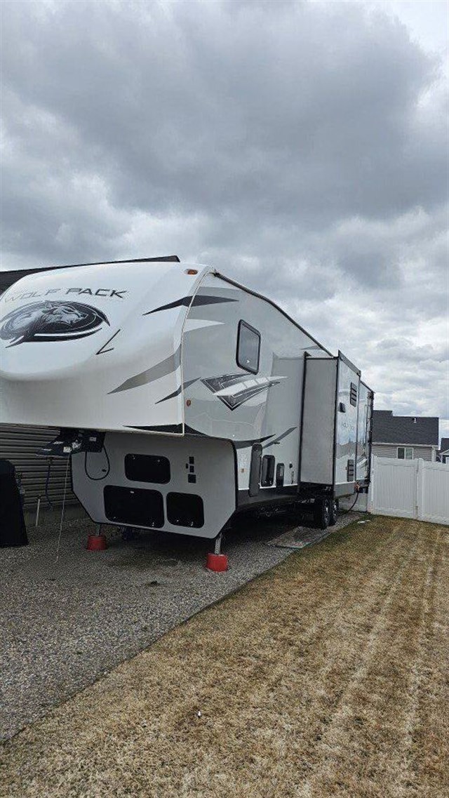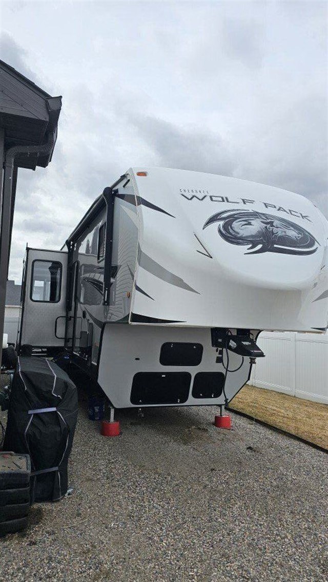 The versatile Cherokee Wolf Pack toy haulers are ready for all your excursions! Each model includes a true high gloss gel coat, a 102" wide body design, and a forced air heated underbelly and enclosed holding tanks so you can camp year around. You will enjoy hassle-free features such as, the in cab tire pressure monitor system, the Happijac bed lift system, and the 100 gallon fresh water capacity. Each model includes a shower skylight, LED interior/exterior lights, Zebra shades in the living area, and a black stainless steel farm sink for that added touch-of-home. The fifth wheels include stabilizer jacks, a second 15K A/C unit in the bedroom, and 50 Amp service. You will appreciate 30 Amp service in the travel trailers, a power tongue jack, and ramp door cables. These toy haulers also include USB charging stations to keep all your gadgets charged and ready to go, premium Teddy Bear bunk mats for comfortability, and a reverse activated light and backup camera for easy loading and unloading!