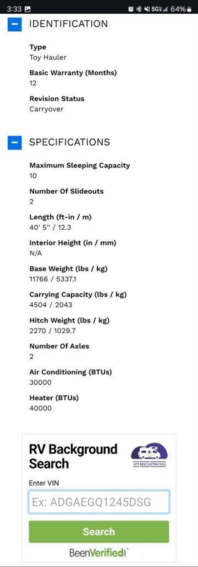Ext Height13 ft 5 inHitch Weight2270 lbs