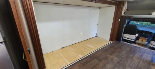 Just before you enter into the bedroom you will find a large closet with a washer/drye hook-up. Inside the room along one side there is a closet, 32" TV, a set of drawers, and a wardrobe. On the opposite side you will find a slide with a queen bed.