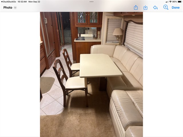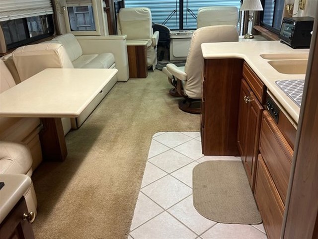 2000 Foretravel U320 motorhome, 450 Cummins diesel pusher. It's 40 feet with walk thru bath. One slide in kitchen/living room--never leaked or locked up. Excellent condition inside and out as it's been in garage when not traveling. Tires are good but 10 years old. Only 2 owners with original owner having desk and extra storage areas added.. 2 separate pantries, laundry area with washer/dryer combo with shelving on top. Enough storage to live in for months or full time. All solid wood cherry cabinets.There are 2 dining chairs that can be used to make dinette good for 6 people.