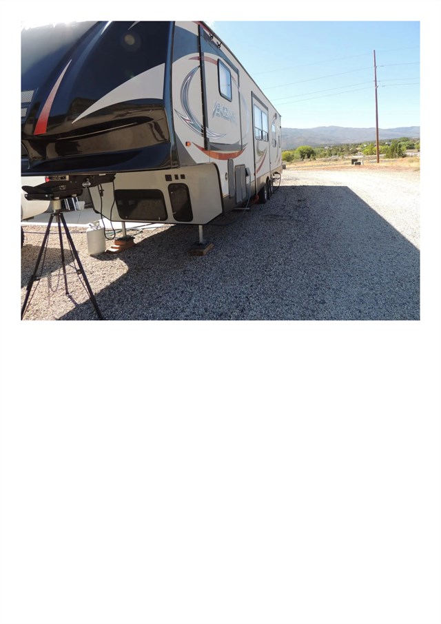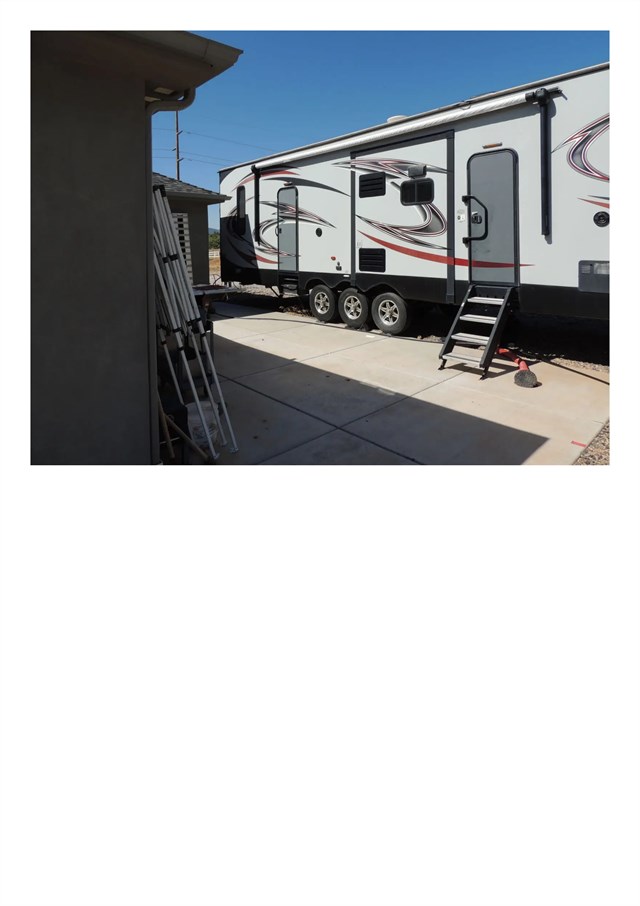 There are plenty of overhead cabinets throughout the fifth wheel, as well as a large pass thru storage. You can also enjoy the outside TV mount.