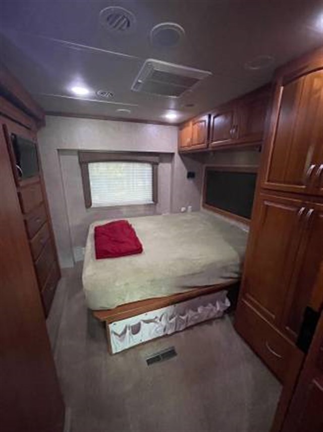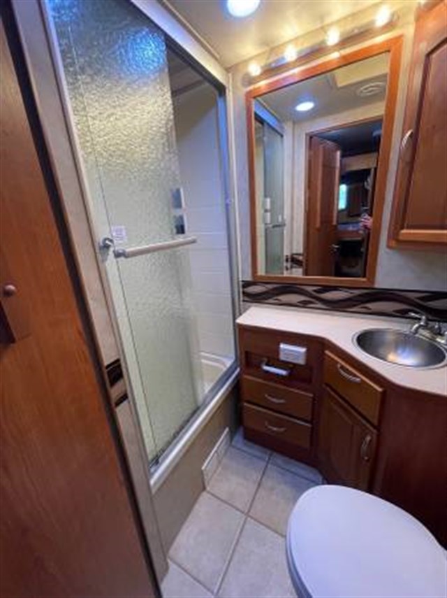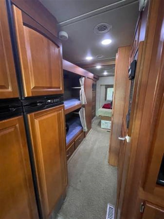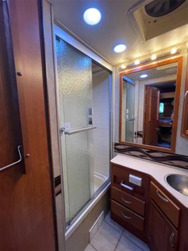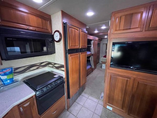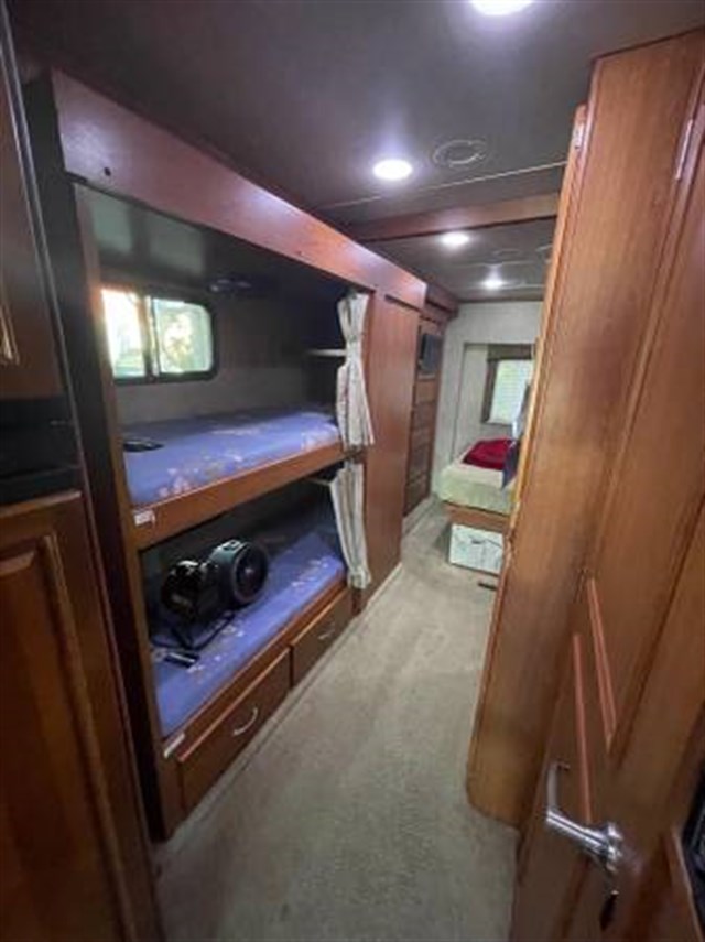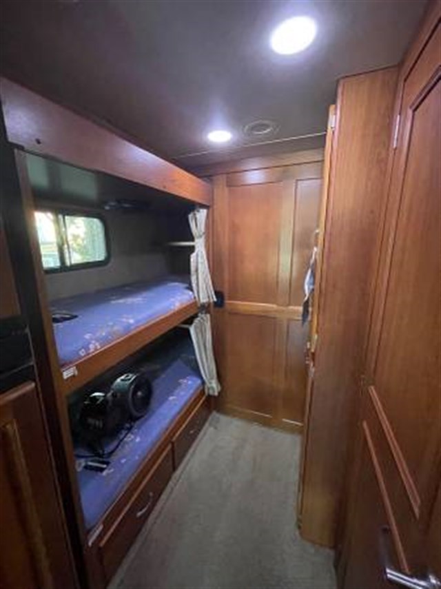 This 35 ft. coach has an amazing amount of living space. Its clean, with no smokers. Queen bed, two bunkbeds, couch pulls out into queen bed. TV under storage for outdoor viewing. Automatic levelers, super quiet and clean generator and enclosed shower.