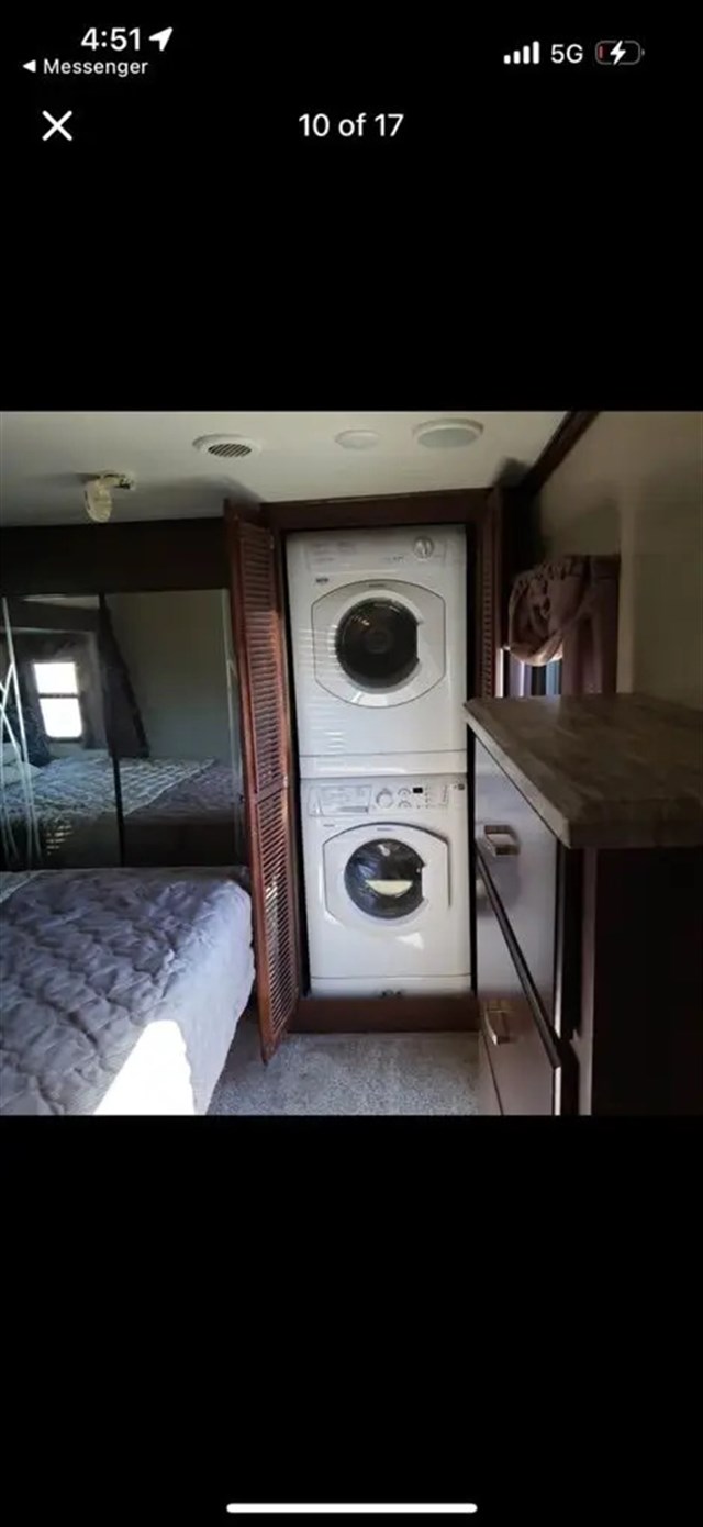 Storage: Pass-thru storage, full-size master bedroom closet, and overhead storage