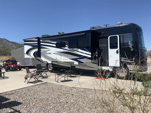 We are selling our BEAUTIFUL Class-A 2018 Fleetwood Bounder. This is the 35-P Model with everything. This unit has four slide-outs, which gives you loads of room. It has king size bed, full size refrigerator/freezer, Washer and dryer, King size hide-A-bed in living room plus a double bed over the cab PLUS four TV’S. There are tons of storage areas both inside and underneath this unit. This unit has less then 25,000 miles and it is ready to roll. I just had it serviced, and the Cummings 7000 generator serviced. It has 6, like new tires. I had a “T-BAR” and a Sway Bar installed for safety. I lowered the price from $110,500 to $99,900 due to a couple of small scrapes. Come and check out this beauty. We are located in Hurricane,