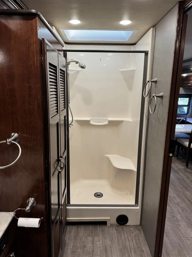 Exterior: Comes with an outdoor shower, an LED TV, and a lighted awning.