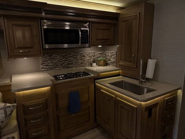 LED-lit, solid-surface kitchen countertops with integrated