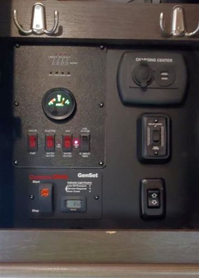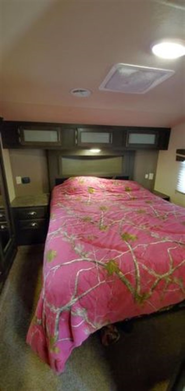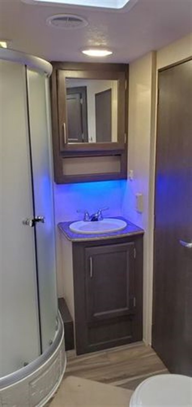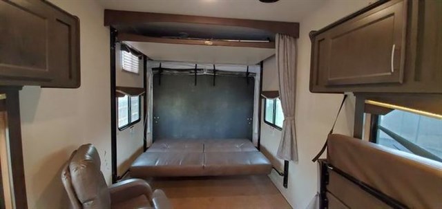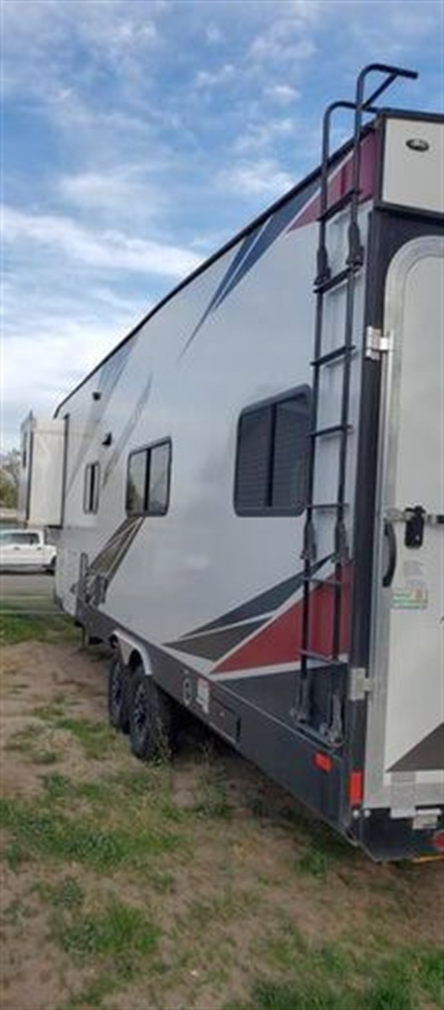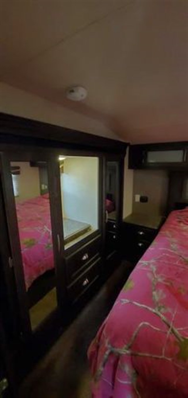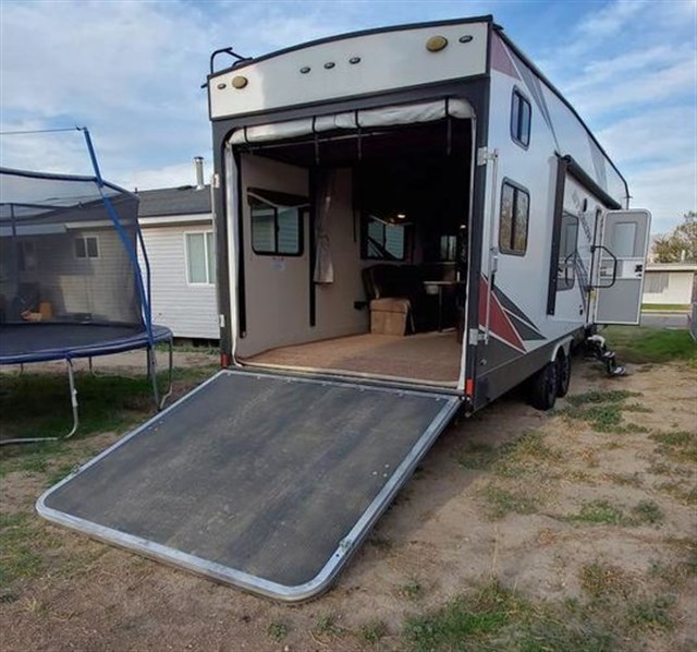 SA3320G series, 36 ft toy hauler with large cargo area, plenty of room for dirt bikes, for wheelers, or side by sides or whatever toys you choose! Kenwood sound system. Its in great condition well taken care of, new tires, solar panel and low hours on generator. Sleeps 7. It's very spacious, 150 gal water tank, gray 65 gal black 40, beautiful leather interior, tons of food storage cabinets and other storage compartments, something the whole family will enjoy! Gross weight is 15,000 lbs. Dry weight 9916. 2 brand new 6 volt batteries, outside shower, 39 inch tv, Electric awning with LED lighting, bluetooth, electric jacks and stabilizers in front and back!