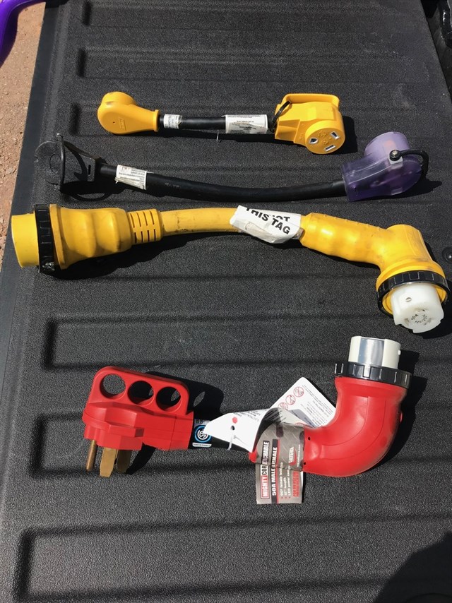New fifty-foot, 50 amp power cord with adaptors for 110 volt and 30 amp