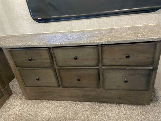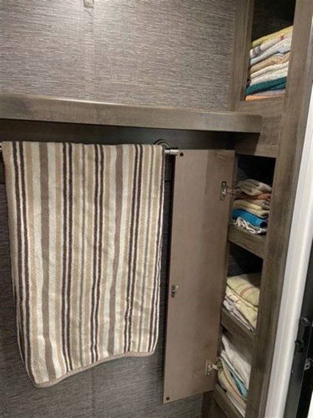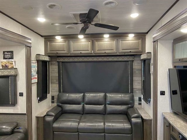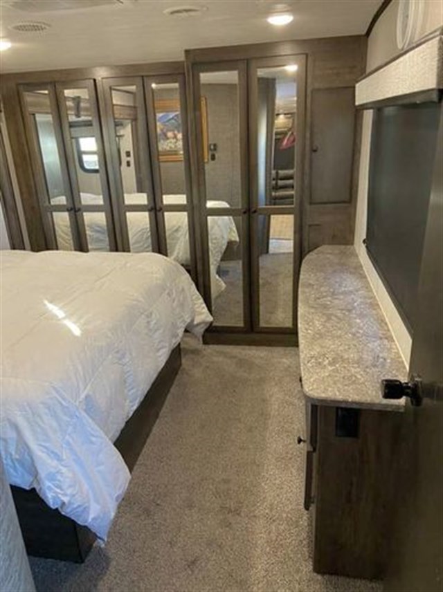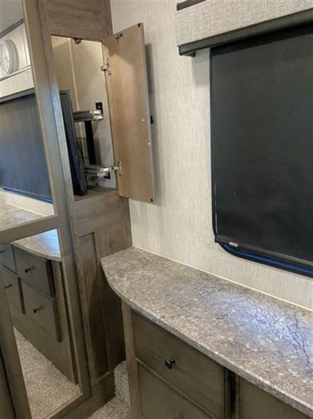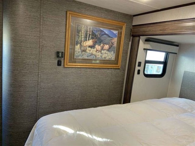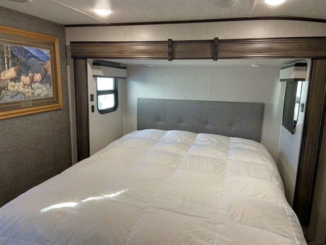 This Bighorn Traveler fifth wheel has everything you need for that perfect getaway you've been planning. Not only do you have plenty of amenities included in this unit, but you also have plenty of space to enjoy those amenities because of the three slides that have been installed, and the large wardrobe in the private bedroom gives you extra room to store all of the camping gear you may have brought along with you, like a pair of hiking boots or a rain coat.