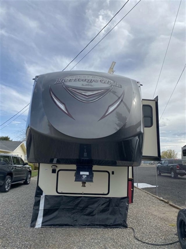 If you are looking for a fifth wheel with an open floor plan and two full bedrooms, then you have found it in this 368RLBHK Wildwood Heritage Glen by Forest River.