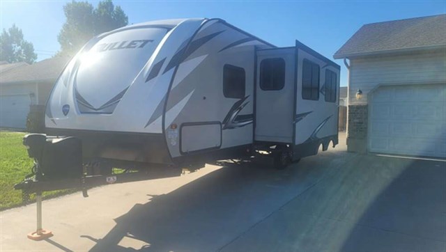 I have a 2020 bullet 261RBS for sale. Owned it for a year and lived in it for 4 months. Clean, in GREAT shape, looks like new. Everything works, no leaks or damage. Comes with hoses, attacents, anti-sway hitch, and more. Comes with all you need to start camping right away. Enclosed bottom so when you run the heat it heats the water lines. Power stabilizers, power awning, power jack, and power slide out. Contact if you have any questions. Also comes with a WiFi buster booster built in so you get service in the trailer.