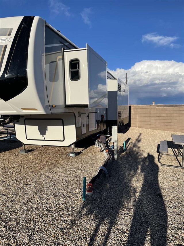 See where the road leads with any one of these Forest River Cedar Creek fifth wheels! They are constructed with the Cedar Creek famous all aluminum superstructure on 16" centers, a "True" Gelcoat exterior, and Silaprene bonded sidewalls that are resilient, grows stronger with age, and also has outstanding resistance to UV, heat, cold, moisture, oil/gas, and highway chemicals. The Dexter Performance and Safety package will give you peace of mind while driving down the road. You can also bring your furry friend and use the animal leash latch, and enjoy your privacy with the Hehr frameless, tinted automotive-style windows. A few other convenient features you are sure to love are the Intervac central vacuum system with a front storage compartment port and interior automatic dustpan, the Congoleum flooring (carpet mandatory in dining slide), and the USB plug-ins on each side of the king bed.