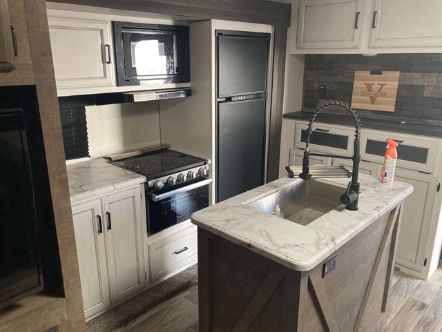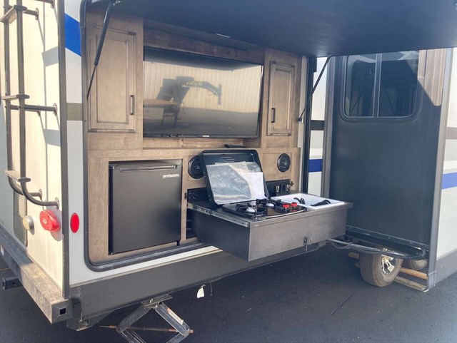 Trailer like New with very little use. out door kitchen, and Range never been used.
