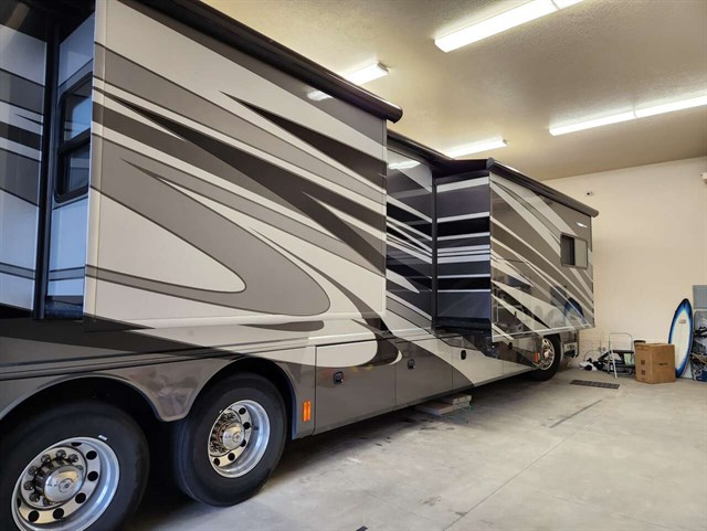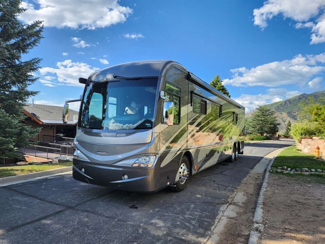 If you are looking for a needle in a haystack, you just found it. This 2010 Revolution 42W has been garage kept and looks like a one year old coach. Non-smokers. Featuring a full master bath in the back and a half bath at midship. King size Sleep Number master bed. There is also an inflatable foldout bed in the driver's side living room couch, and a jacknife bed in the other couch to comfortably sleep 5. 4 flat screen TVs, including the one in the outdoor slide. Large residential refridgerator/freezer with ice maker. Wash and dryer. Dish washer. Central Vacuum. Aqua Hot for unlimited hot water and endless hot showers. 3 roof A/C units. Dining table slides out to seat 4. AGM batteries and diesel generator for boondocking. 400HP Cummins Diesel. Once you drive a tag-axle coach, you are spoiled for life (oncoming trucks and crosswinds don't move it). This coach has been trouble free for years and just works. Our kids have moved on so we don't use it anymore, and it's time for another family to make memories.