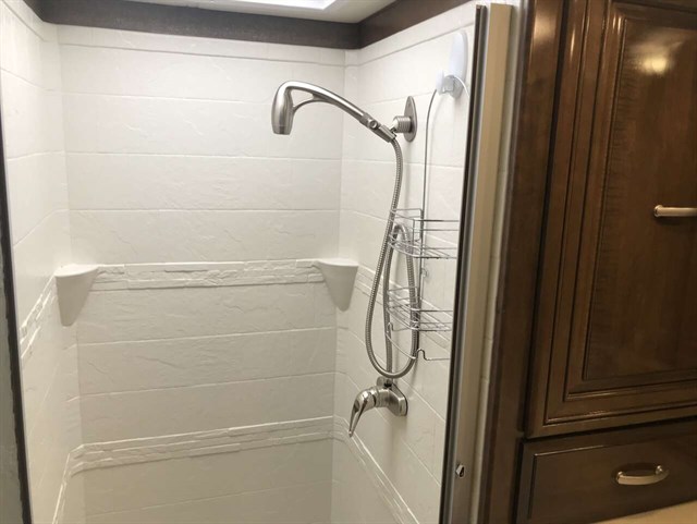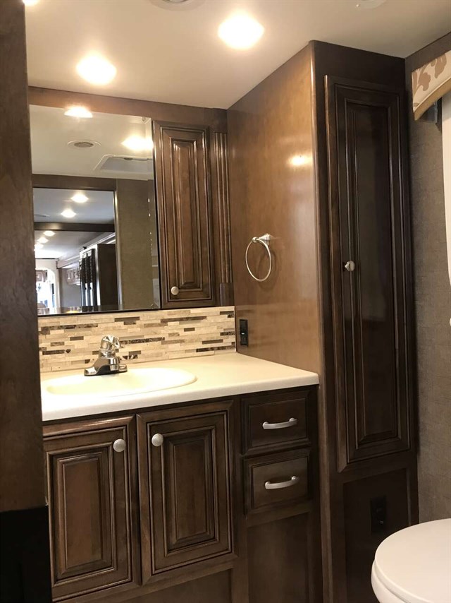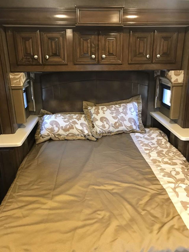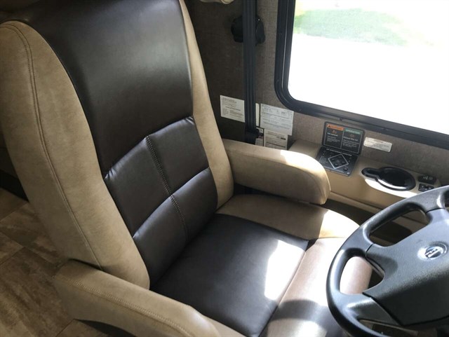How does laughter in the back, and smiles at every stop sound while you travel? Well it's time to see yourself driving this Palazzo coach 36.1 with the whole family. There are leatherette reclining/swivel captain's chairs up front and comfortable furniture with five more seatbelts behind the cockpit. You will find sleeping space for the family of 7 with the queen bed, overhead bunk, and furniture when folded down for the night. There is a full master bathroom and a half bath for an added convenience for all. You can store your perishables in the stainless steel residential refrigerator with ice maker and cook in the convection microwave oven. It's time to load up the family, and start enjoying life today!