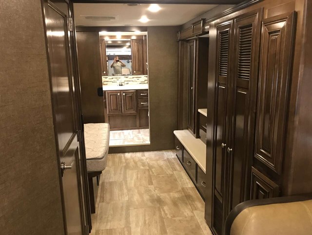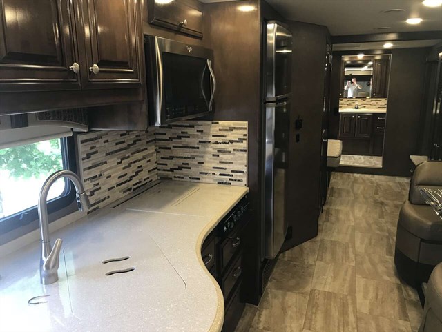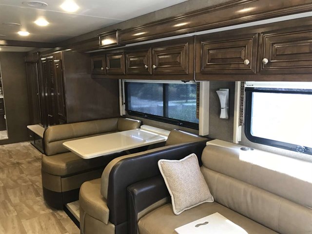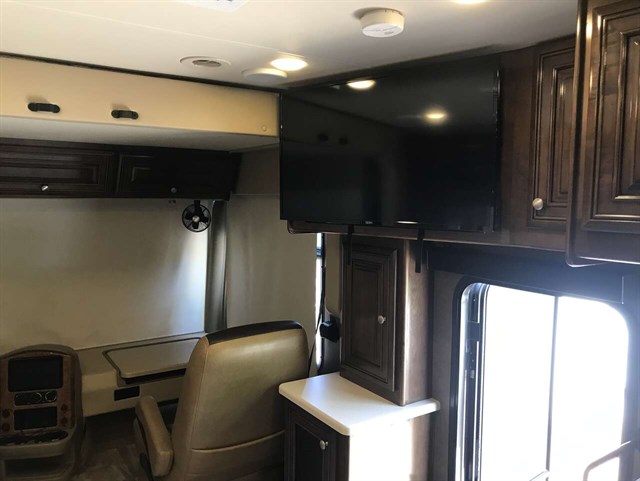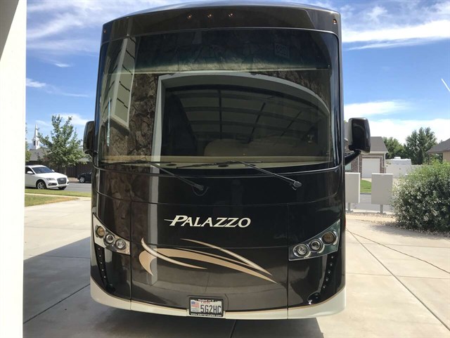 With any Palazzo motorhome by Thor Motor Coach you will be impressed with every inch of space, inside and out. Thought has been given to making life more enjoyable on the open road. From the touchscreen dash radio with Bluetooth, GPS Navigation, and back-up monitor to the dash workstation with 110-volt and 12-volt outlets allowing the passenger to work while moving down the road. There is a Cummins Onan RV QD 6000 diesel generator for those times you are not at a campsite or RV park. You will find a lateral arm awning which allows you more room underneath without having to duck under the arms to get to the entry. Inside you will be able to relax and sleep on a Denver Mattress, watch TV, and charge your electronics with the USB ports in the nightstands. And much more!