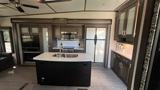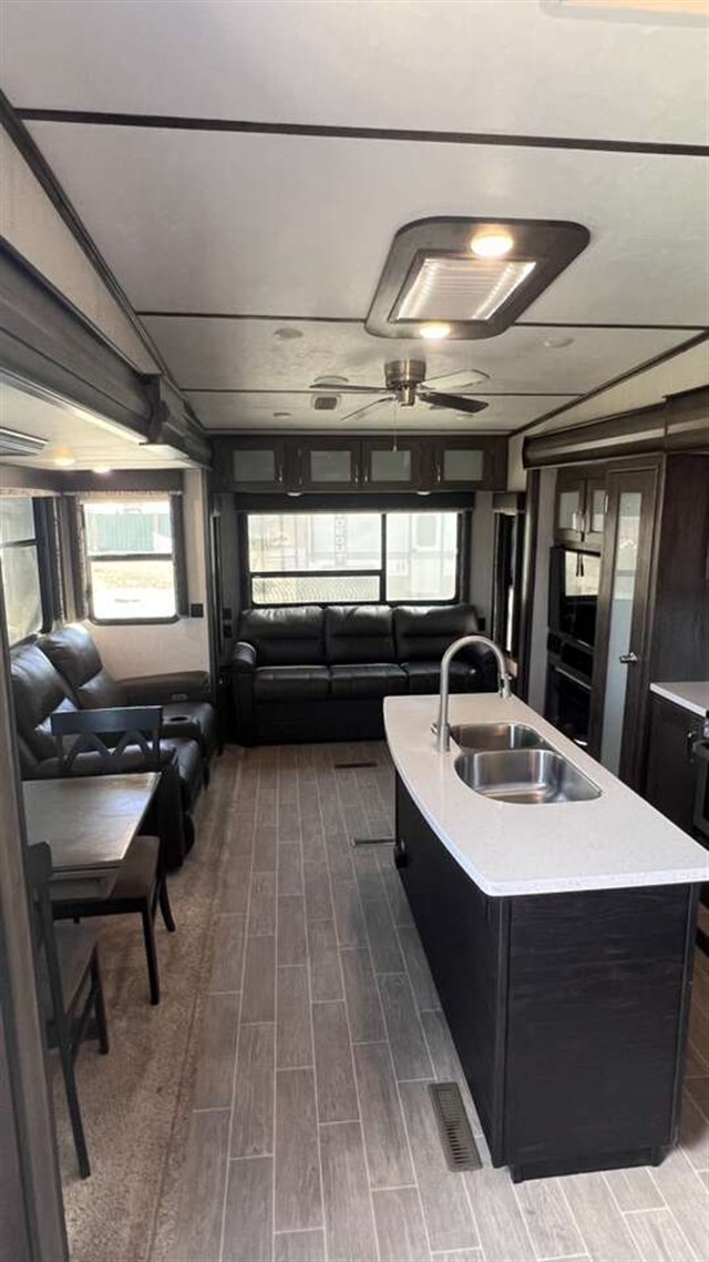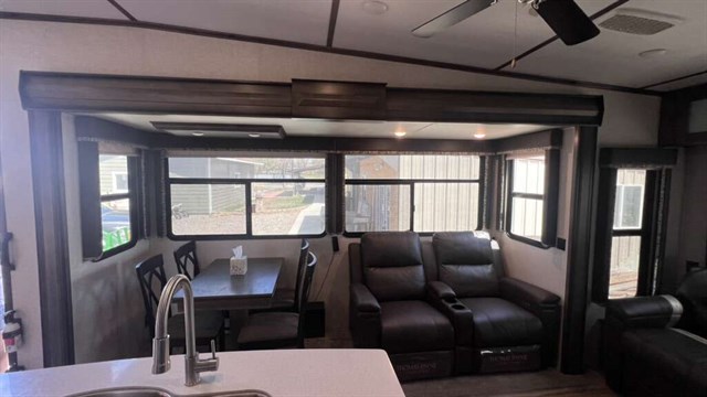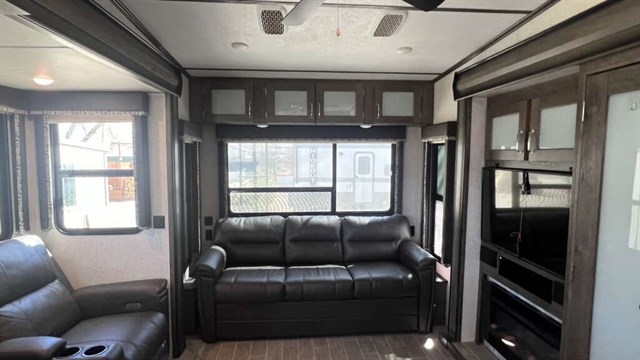 When heading out and setting up in a Keystone Montana High Country fifth wheel you will appreciate the Dexter E-Z Lube axles, Max Turn front cap and radius frame with Hitch Vision, and an enormous drop frame pass-through storage compartment to name a few features. Inside you will find luxury and comfort with the 78" tall main slide out with panoramic windows providing beautiful views, more bathroom storage with three drawers in a residential vanity, All-In-One Furrion controls for the TV, radio and fireplace, Beauflor flooring and a residential ceiling fan for natural air movement. It's time to find the premium fifth wheel you can't live without, and start making memories in a Montana High Country today!