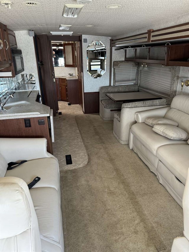 Nice low mileage diesel pusher. Has served our family well. Has 1 big slide out in the living room and 1 slide out for the master bedroom. Tons of storage inside and out on this. Hydraulic leveling jacks. Onan quiet diesel 7500 generator. Cat 330 hp diesel engine. TracVision satelite system. Washer / dryer combo. Front and rear tv's. Tires are in good shape. Call or text for any specific information or pictures.