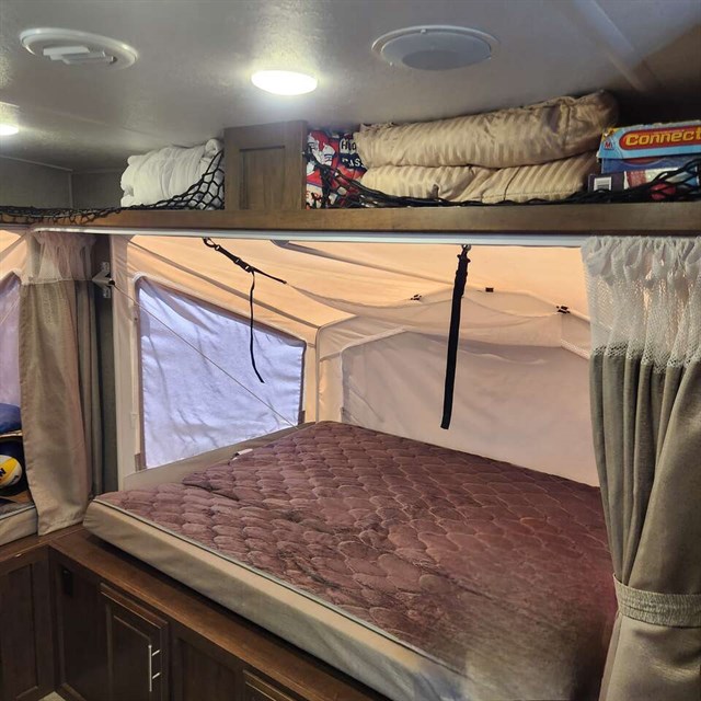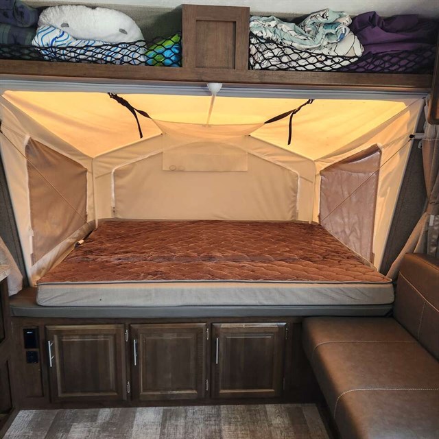 **Sleeps 10:** Perfect for large families or groups of friends, this trailer offers ample sleeping space while maintaining a cozy, tent-like atmosphere to immerse yourself in nature.