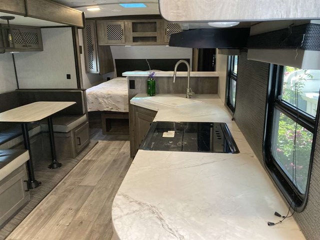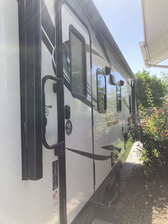 No matter which direction or camping spot you’re headed, the spacious and innovative, North Trail ultra-lite weight travel trailers get you there with ease. With this RV's open concept and oversize windows, EZ Sweep slide, and King Kong sized storage space you’ll have everything you need and live in the comfort of home. King size master bed, slide out dinette table folds into second full bed, full-size refrigerator/freezer with chalkboard surface, Gas cook grill top, propane heater and electric AC, 6 gal. gas/electric water heater, many cabinets/closets and USB/electric outlets in each room (kitchen, bath, and bedroom), electric jacks, power hitch jack, fan/rain sensor, power awning, stability jacks, 12 volt flood light, CO and propane gas alarm, Furrion entertainment system with interior and exterior speakers, power roof vent, spare tire and carrier, aluminum wheels, auxiliary battery, 26’ long and 9’ wide. Make me an offer.