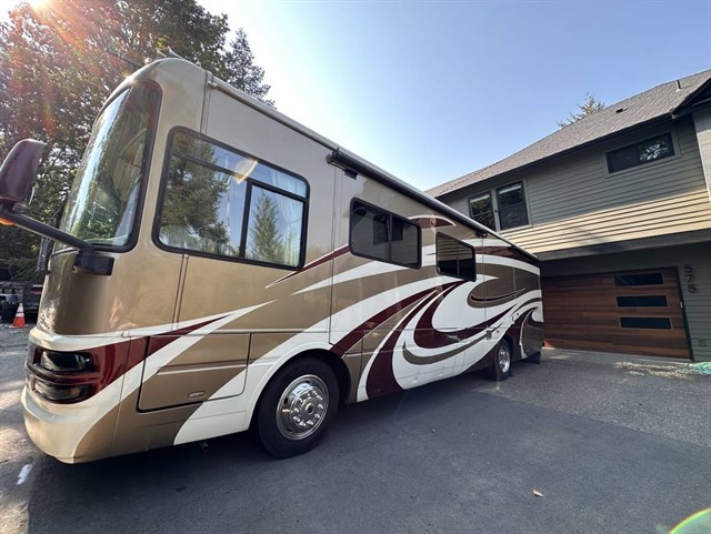 34' National Tropical 340 Cummins with Alison Transmission. LOW MILES: 32,585, 2 slides, new tires, interior is in excellent condition.