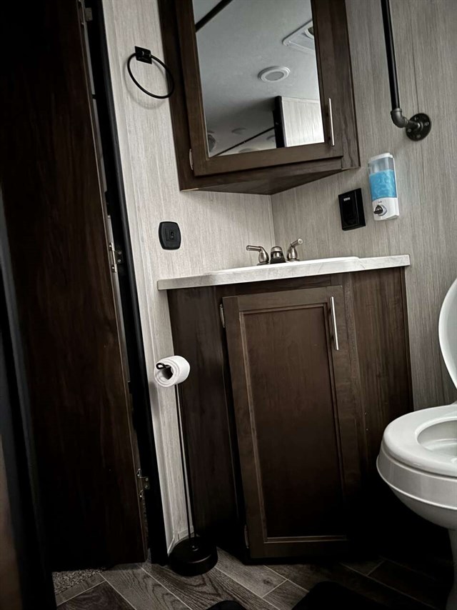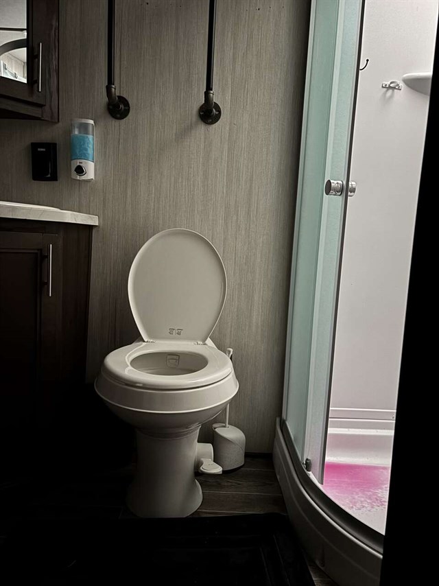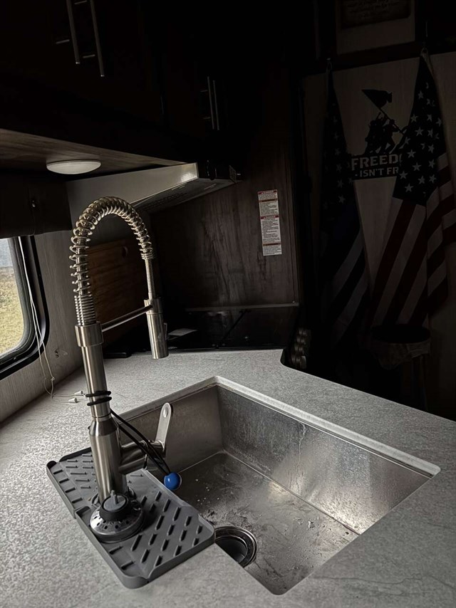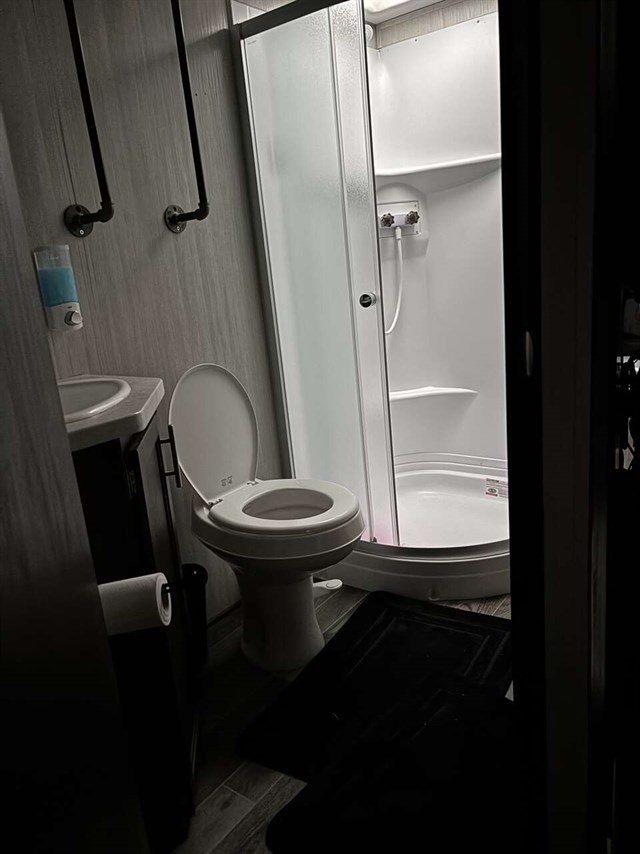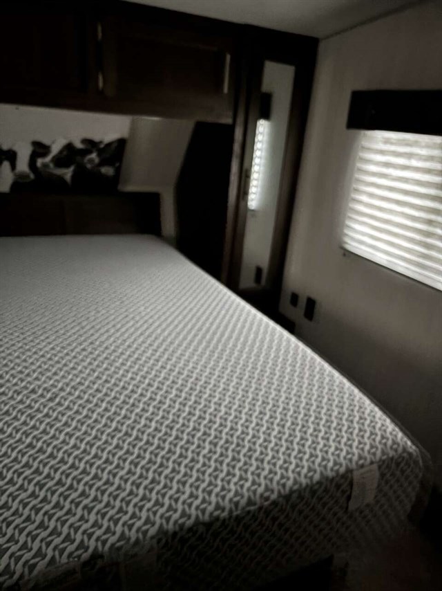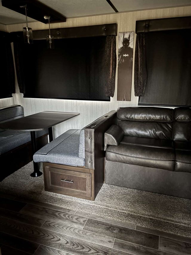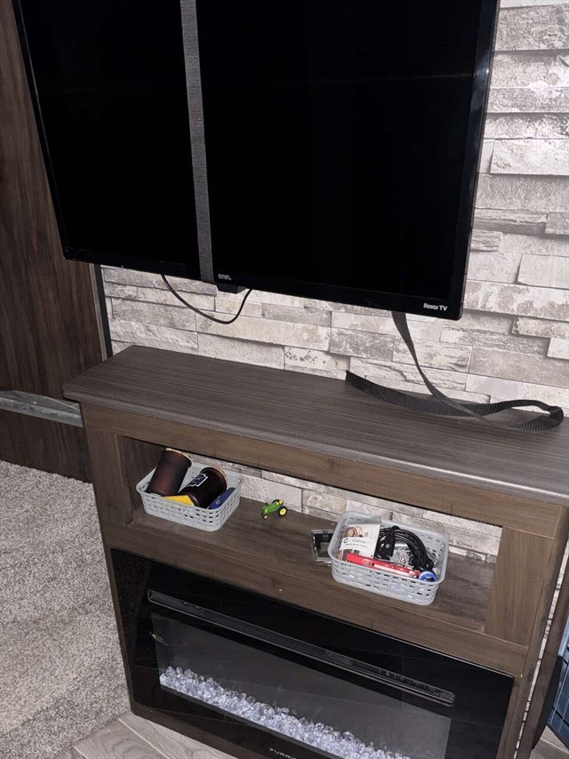 This fifth wheel toy hauler sleeps 8 people . Length is 39'3 and it's 8'6 wide and 13'5 height. Center living room with a hide a bed sofa table makes into a bed and has a Tv and fireplace. TV in the garage that is 12' with a queen happy jack double beds washer dryer ready spring loaded ramp door. Has a 21' awning. 30 gallon gas tank generator ready. Kitchen has a microwave with a 3 burner stove. Lots of storage has a tandem axel with upgraded tires.