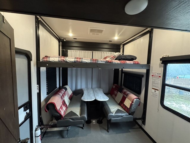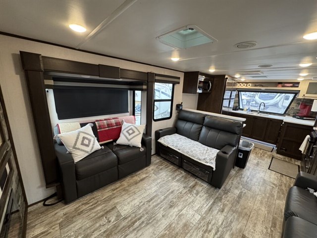 This Fifth-Wheel Toy Hauler sleeps 6 people and is available in Draper Utah