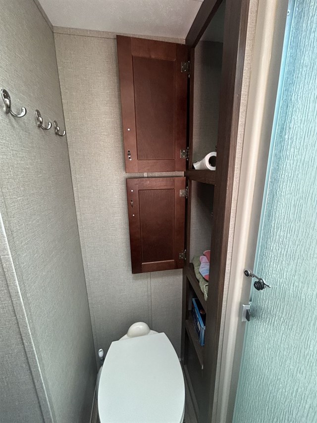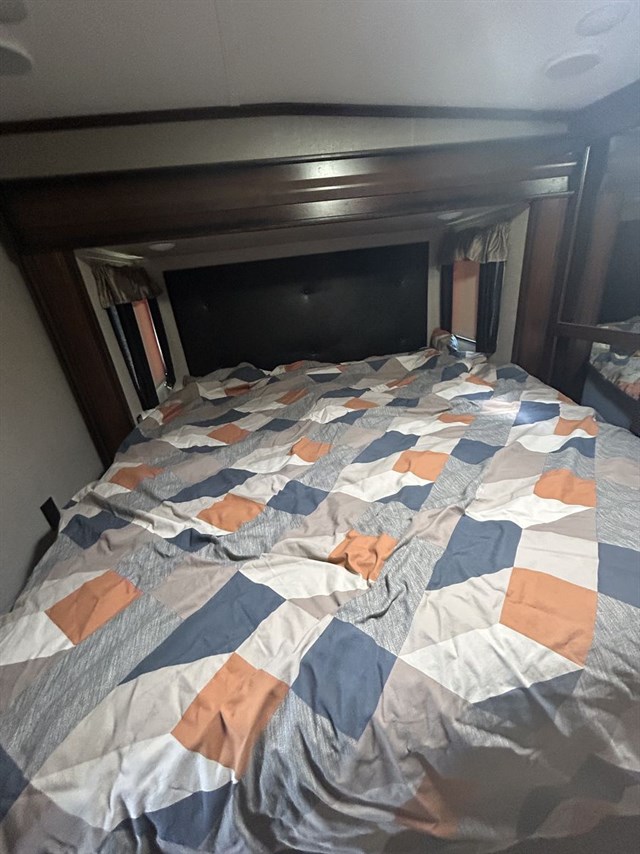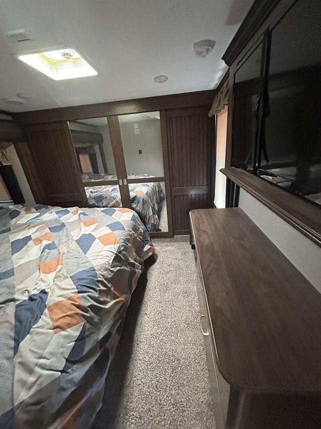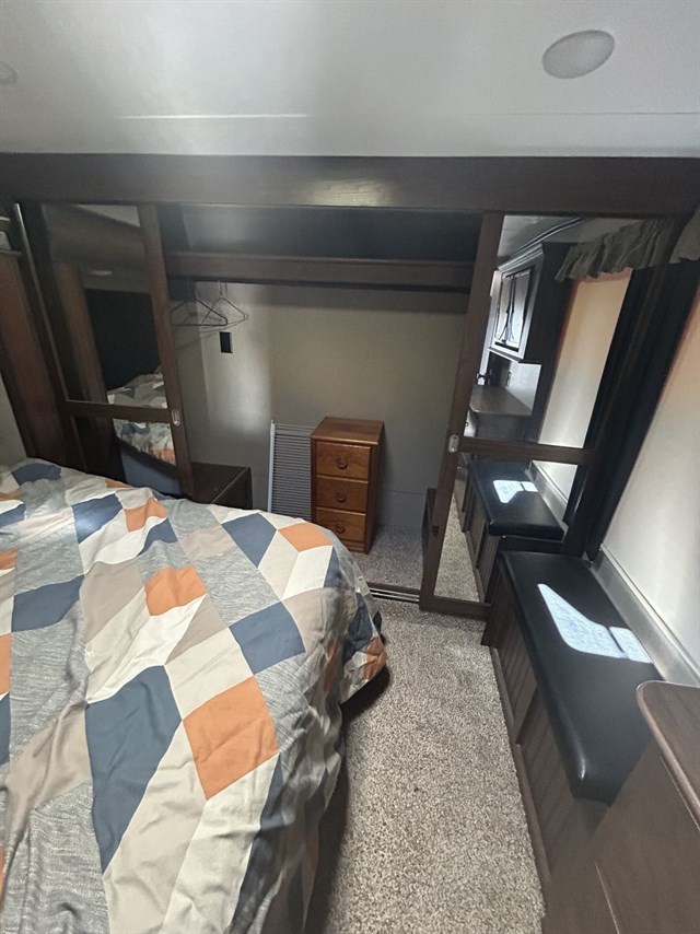 Bedroom: Front king bed with ample closet storage.