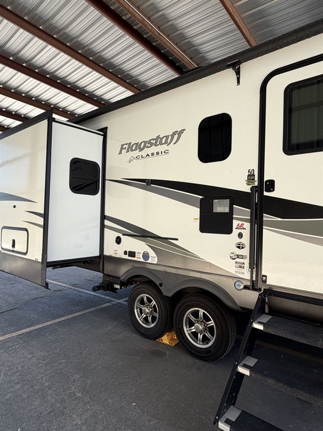 Each one of these Forest River Flagstaff Classic fifth wheels or travel trailers will be your home on wheels! Their quality craftsmanship and attention to detail shines through the enclosed underbelly, the radius roof with vaulted interior ceilings, and six-sided fully aluminum-framed floor, walls, and roof. Towing your unit will be easy with the Goodyear Endurance tires plus a tire pressure monitoring system with a monitor. The interior of each Flagstaff Classic model will have you feeling right at home with Sedonwood cabinetry, soft closing drawer slides, reading lights in the bedroom, plus many more comforts.
