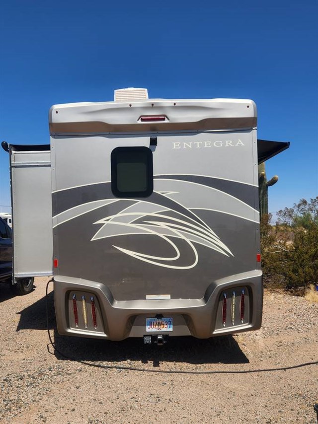 The Entegra Qwest Class C RV Model 24L is approximately 25 feet 2 inches in length and features a one piece seamless fiberglass roof, 1,000 watt inverter, one-piece seamless front cap, Ultraleather furniture, day/night roller shades, Mercedes 3500 chassis and a V-6 Turbo 188HP diesel engine. This amazing RV also features the Customer Value Package option which includes a backup camera, electric awning with LED lights, framless windows, infotainment center, keyless cab entry, power heated mirrors, stabilizer jacks, driver & passenger swivel seats and tank heating pads. This beautiful RV also features the optional diesel generator, hydraulic leveling jacks, and sun folding shade.